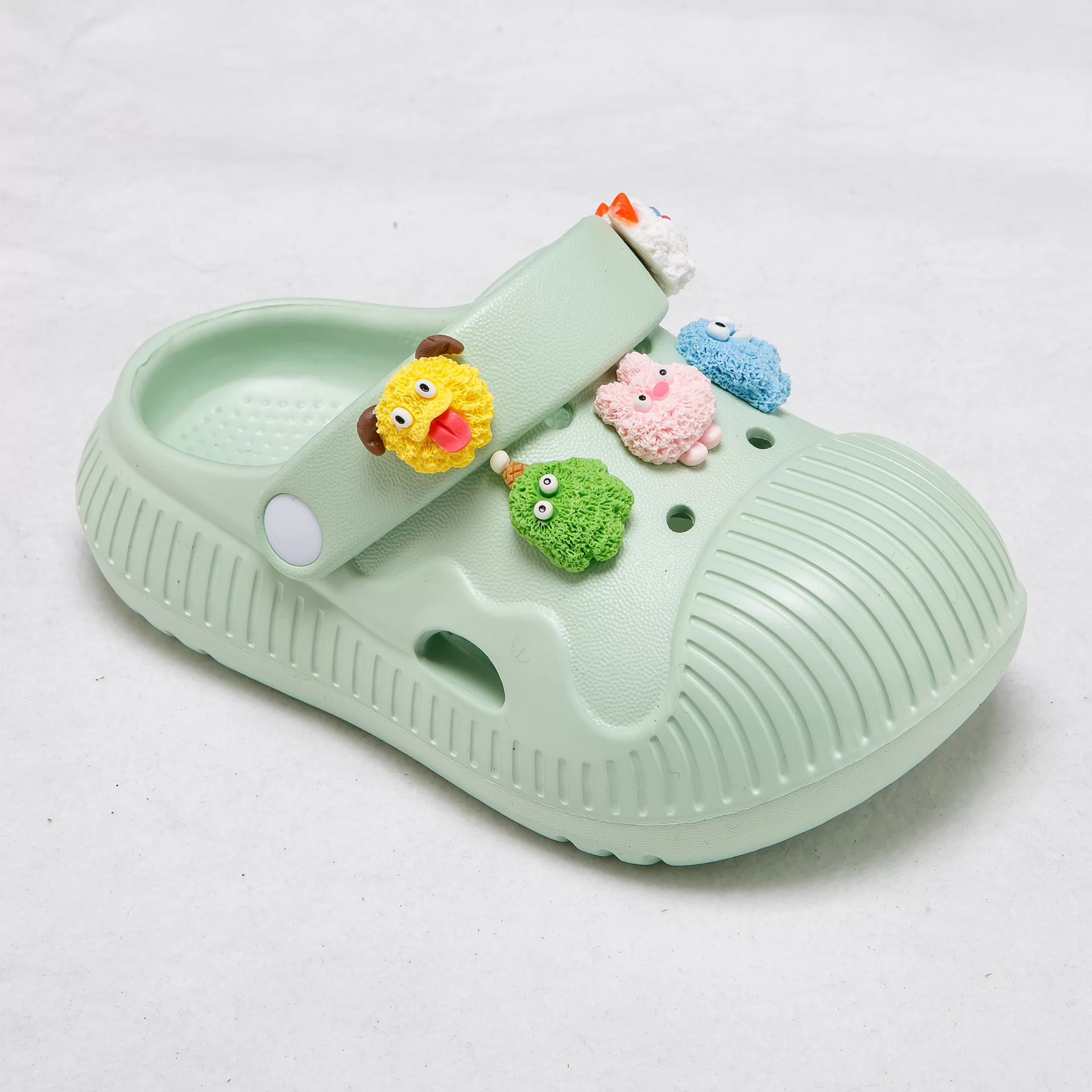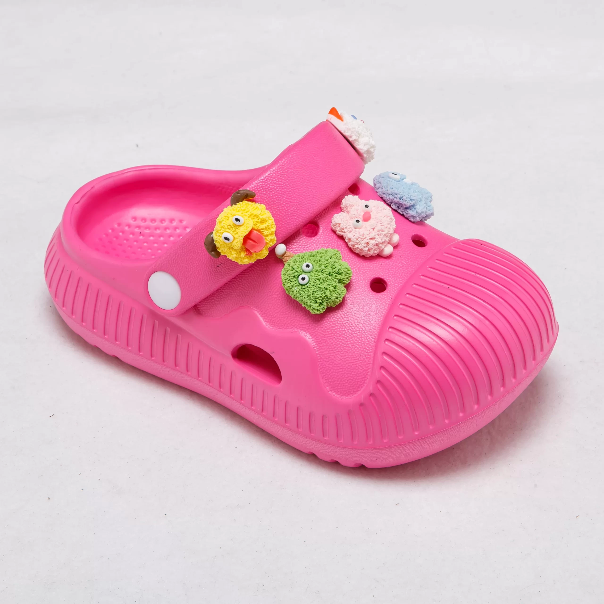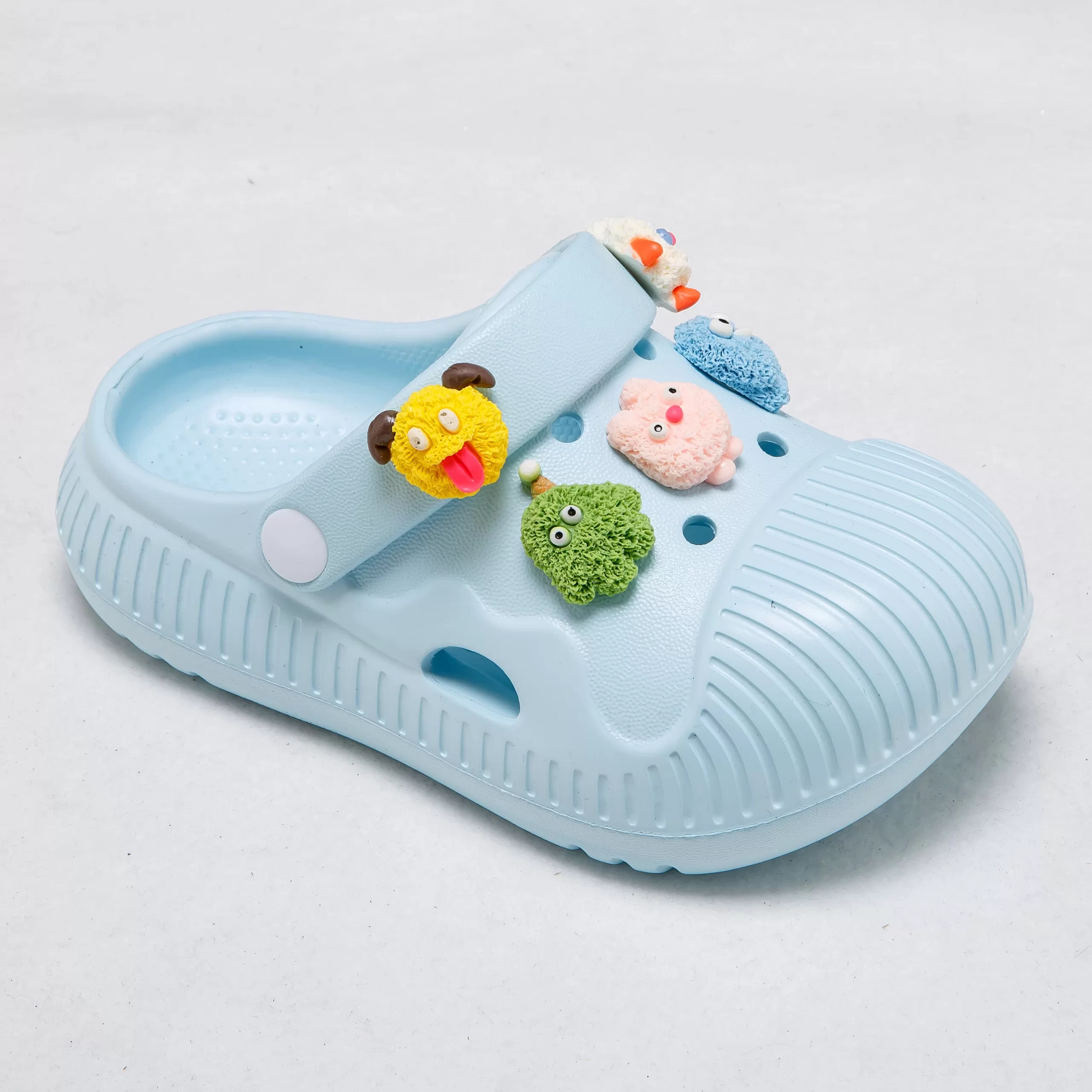 These vibrant clogs are designed to spark joy in every step, featuring adorable, removable cartoon charms that let kids personalize their shoes to match their playful style. The lightweight EVA material offers cloud-like cushioning to support growing feet, while the ribbed texture enhances breathability and grip.