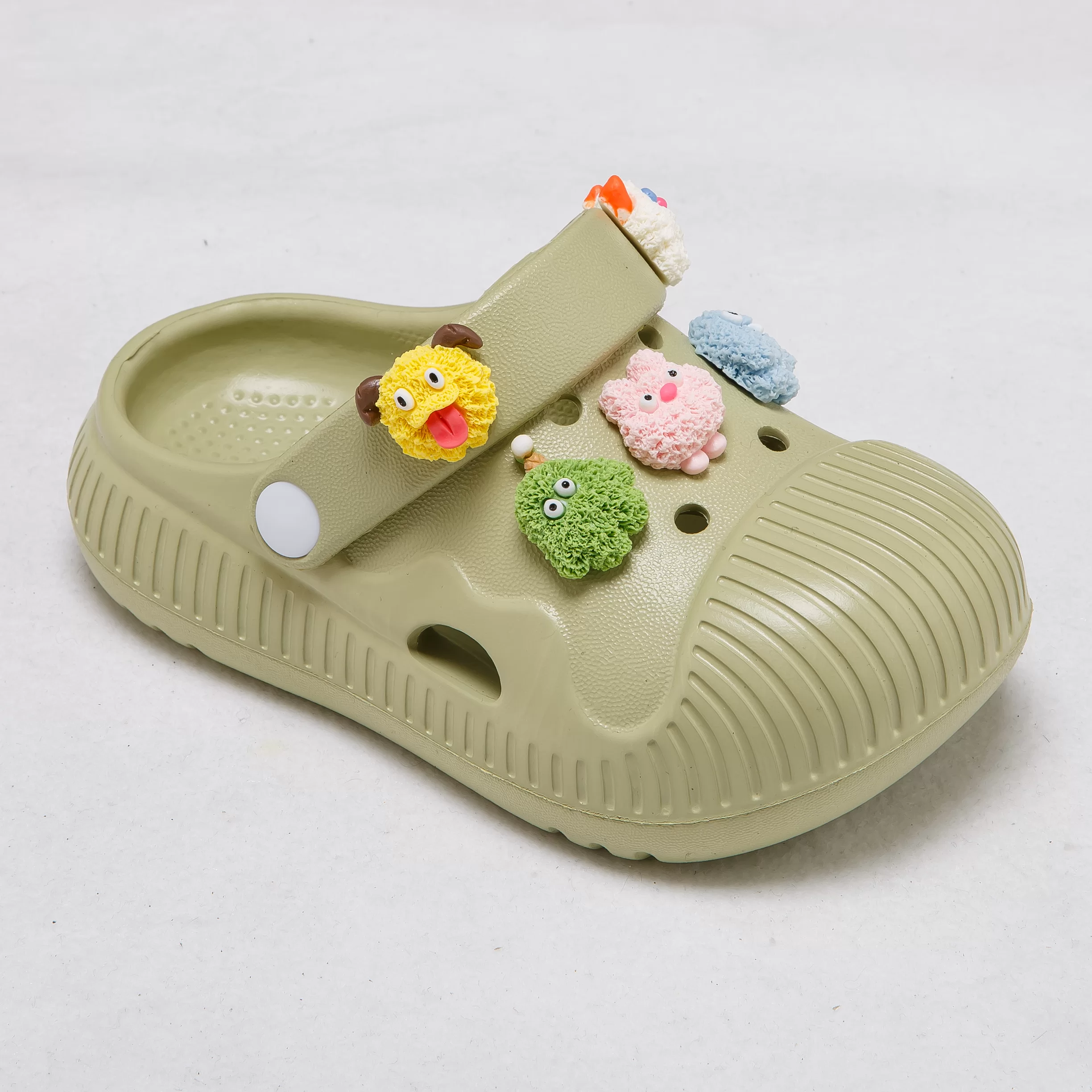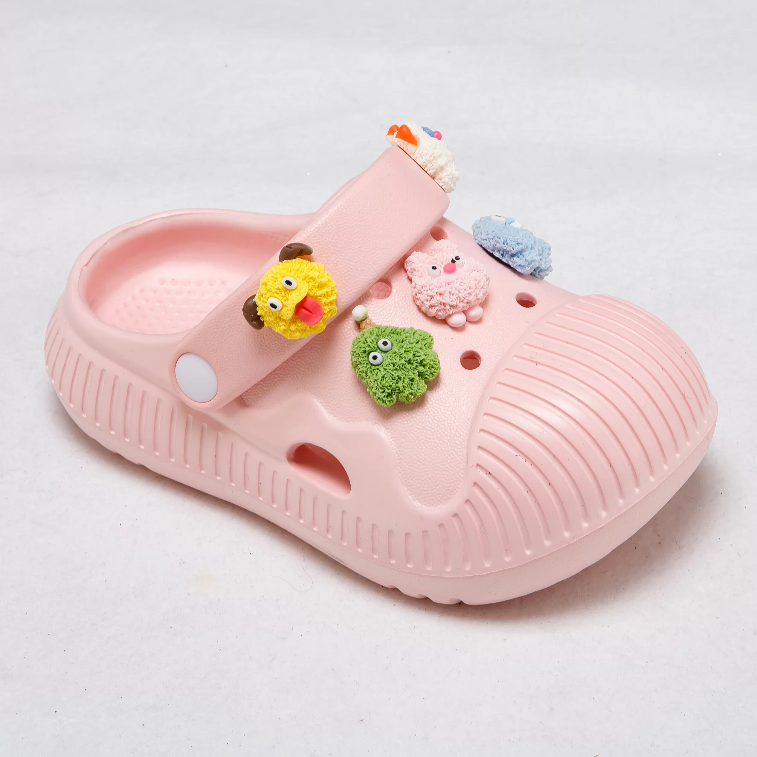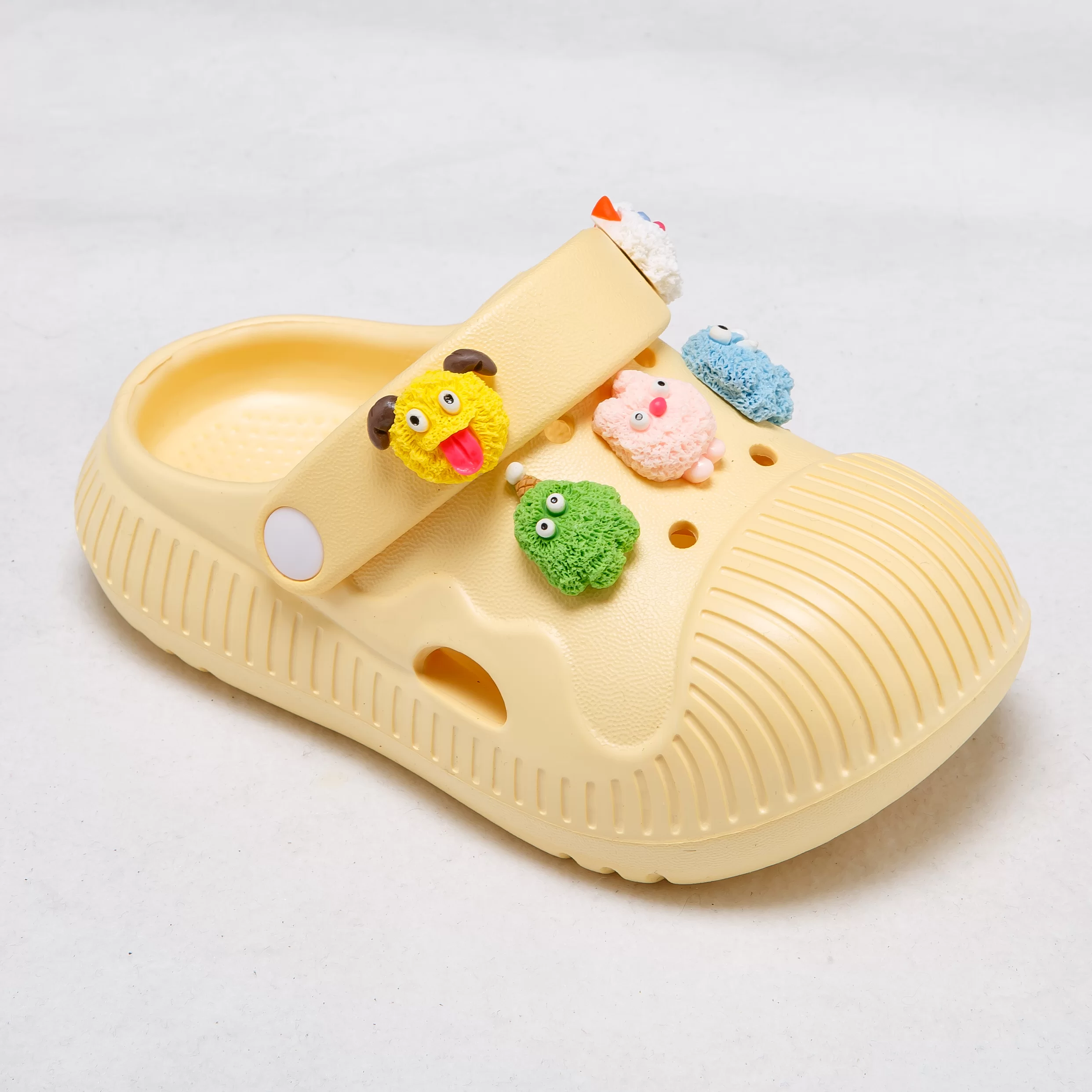 These vibrant clogs are designed to spark joy in every step, featuring adorable, removable cartoon charms that let kids personalize their shoes to match their playful style. The lightweight EVA material offers cloud-like cushioning to support growing feet, while the ribbed texture enhances breathability and grip.