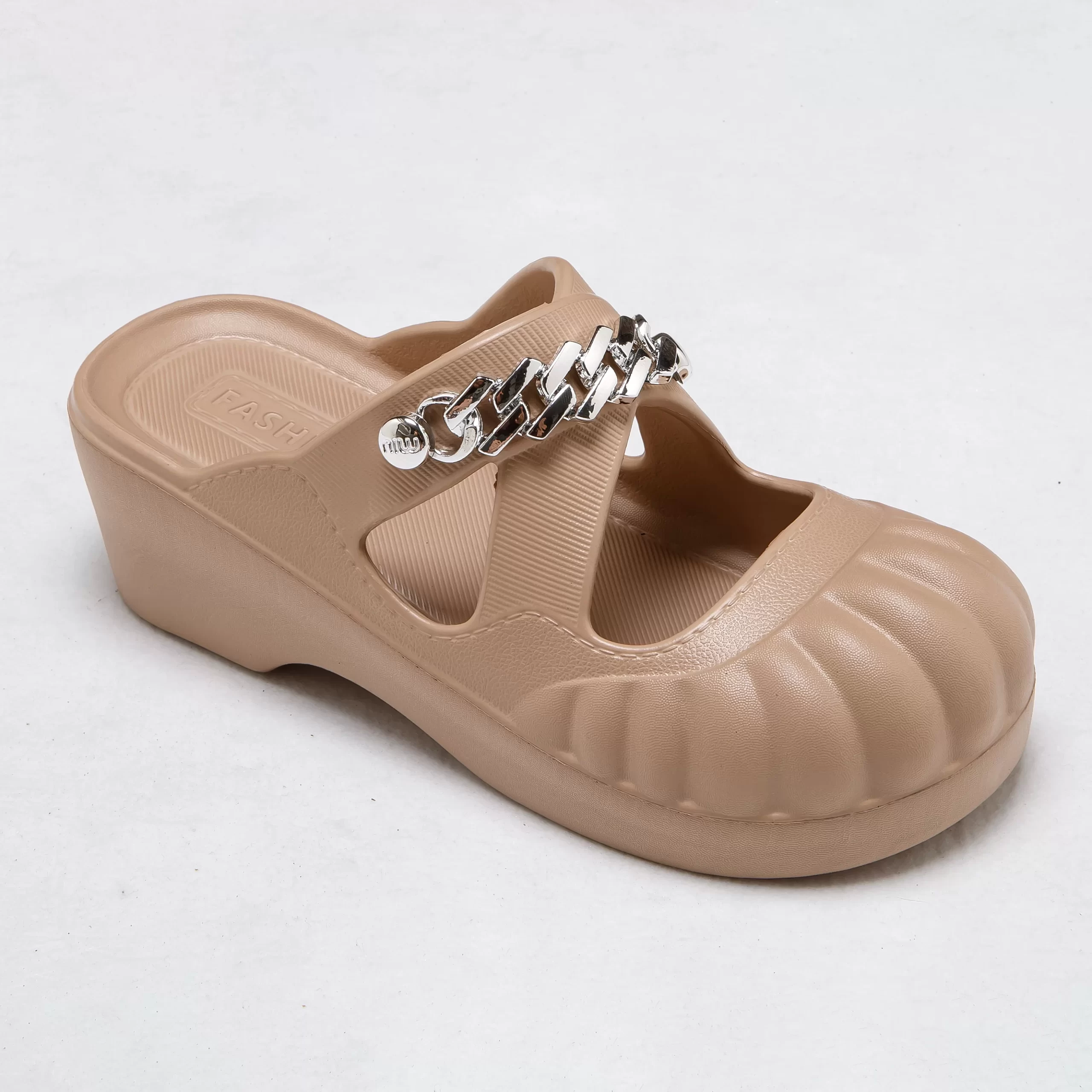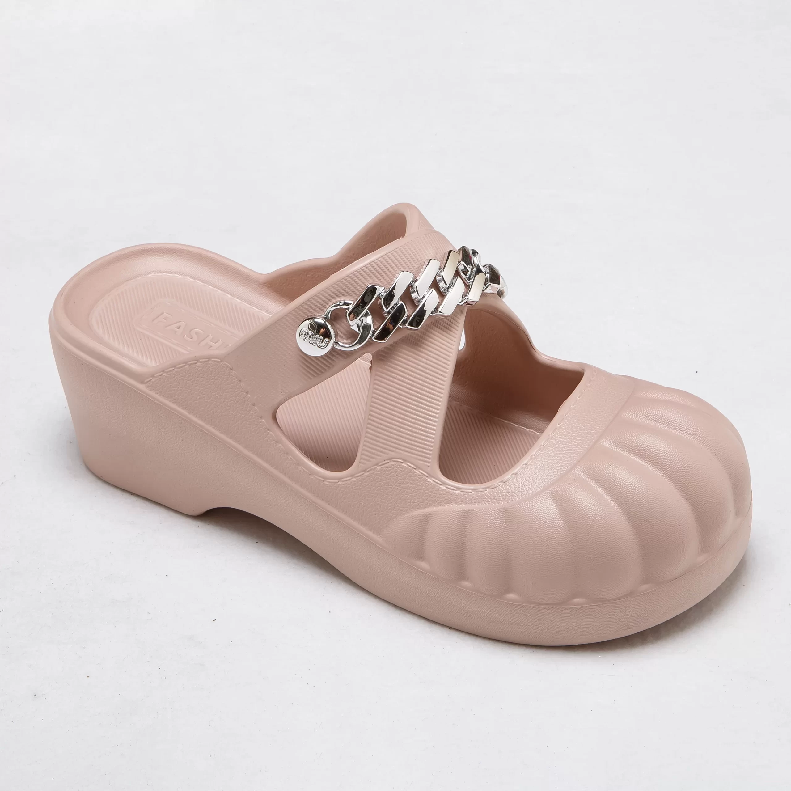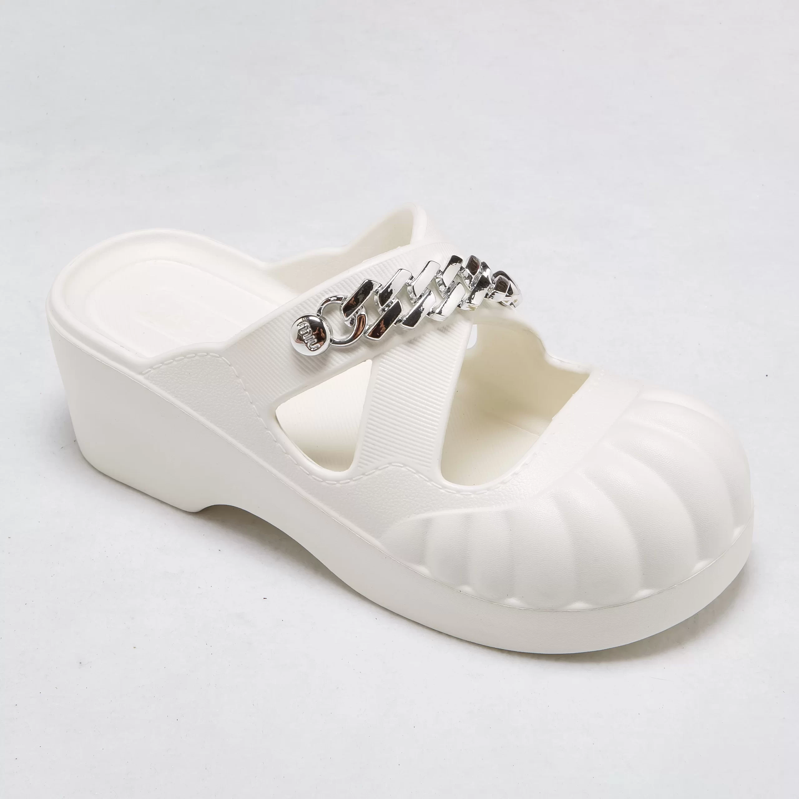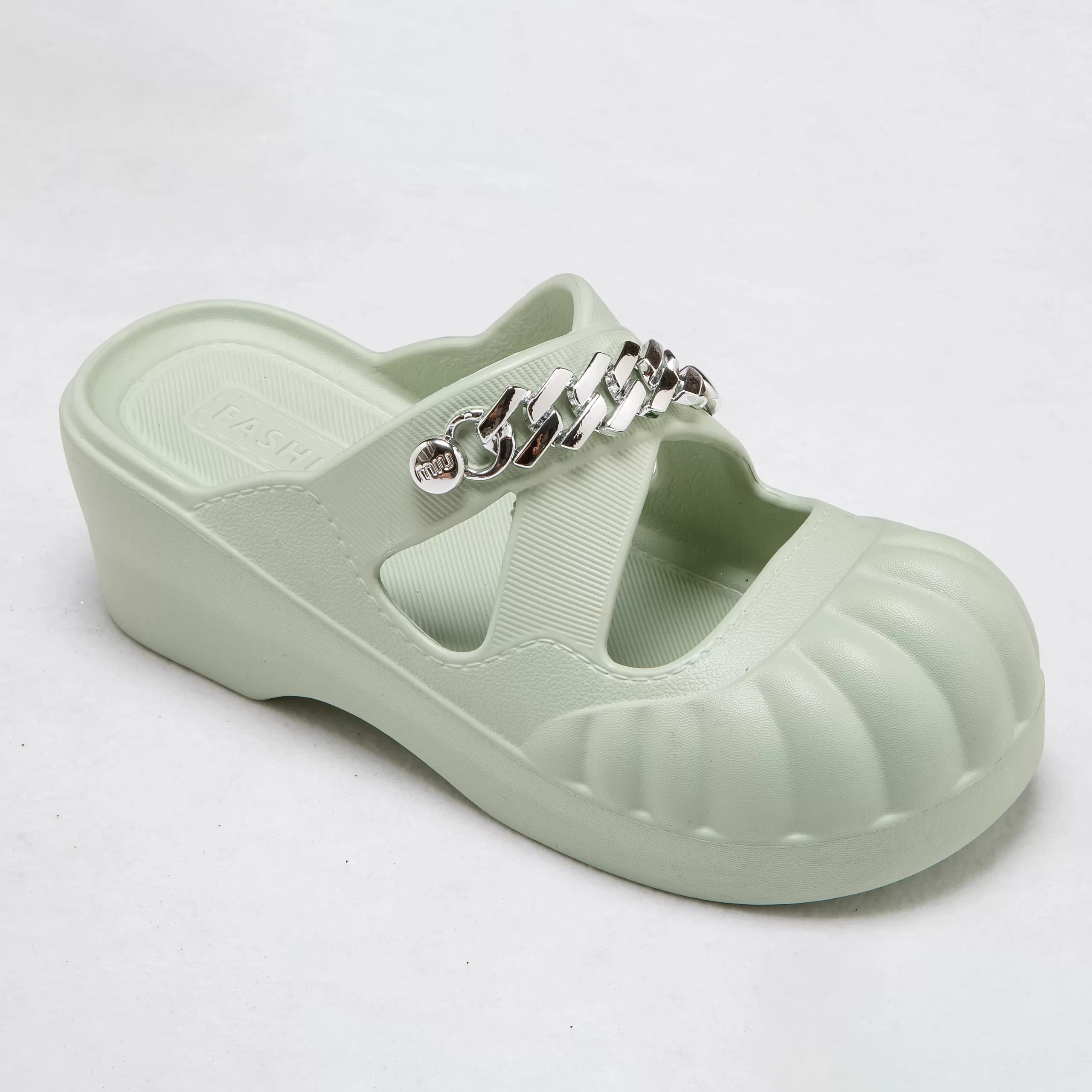 Women’s Chain-Embellished Crisscross Platform Mules – Lightweight EVA Clogs