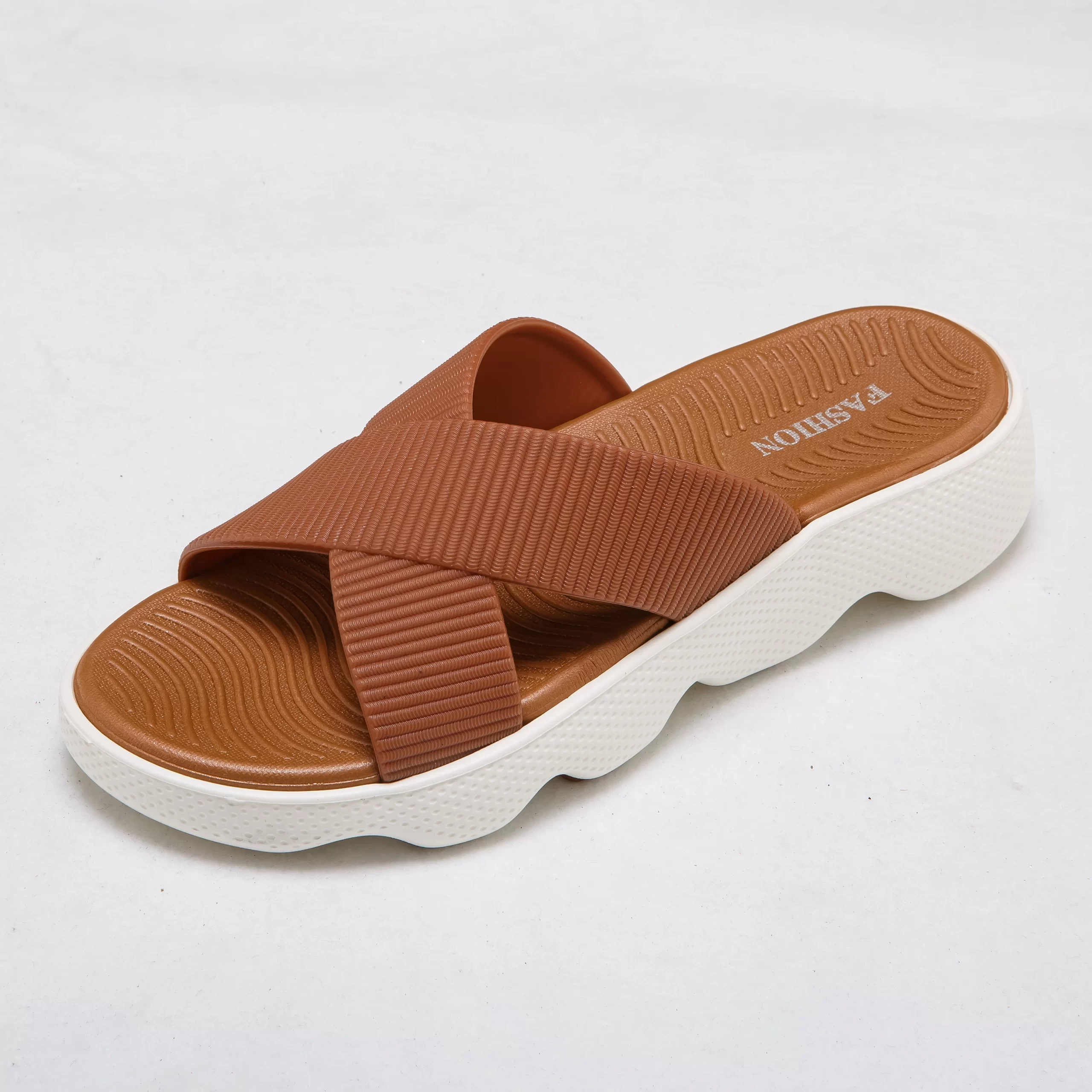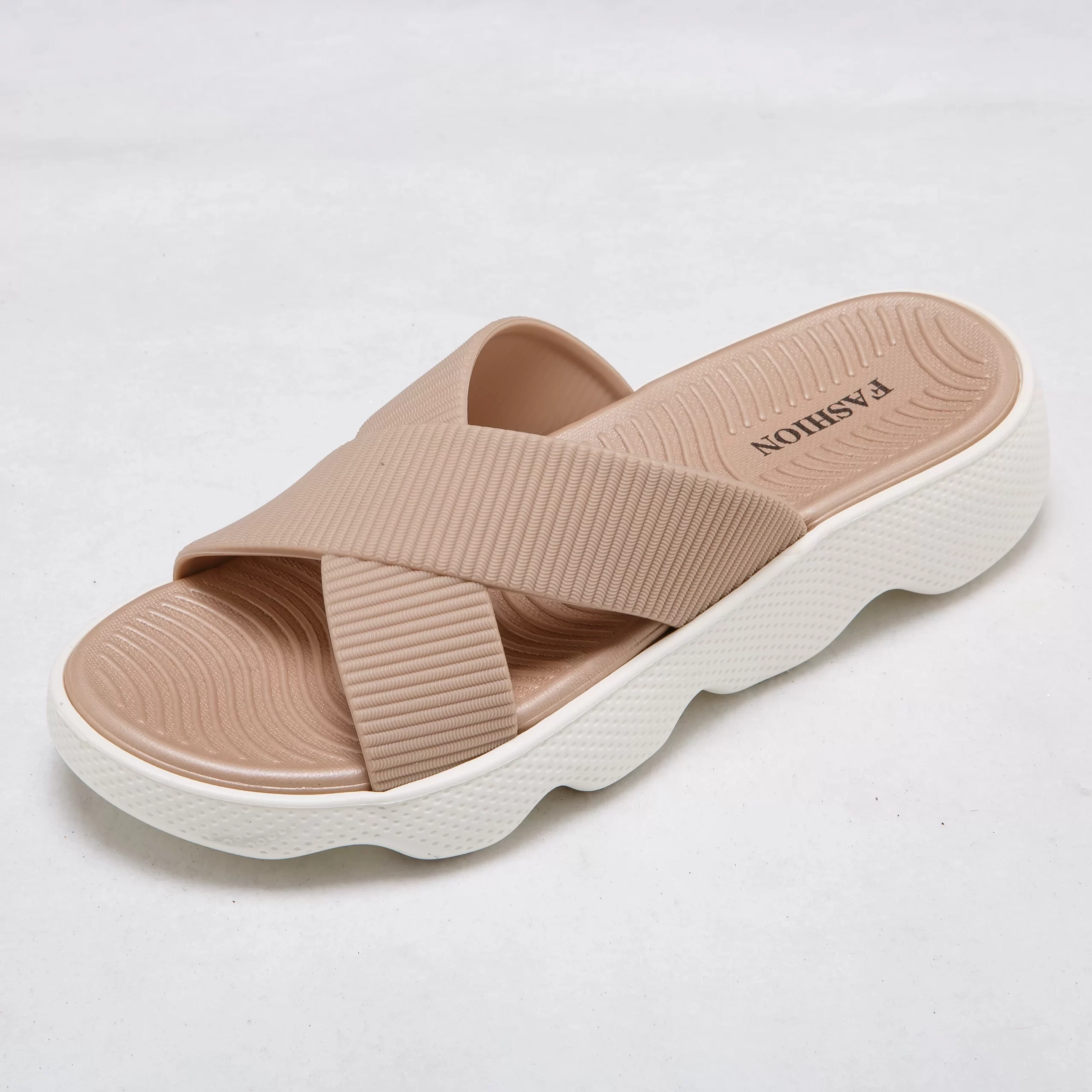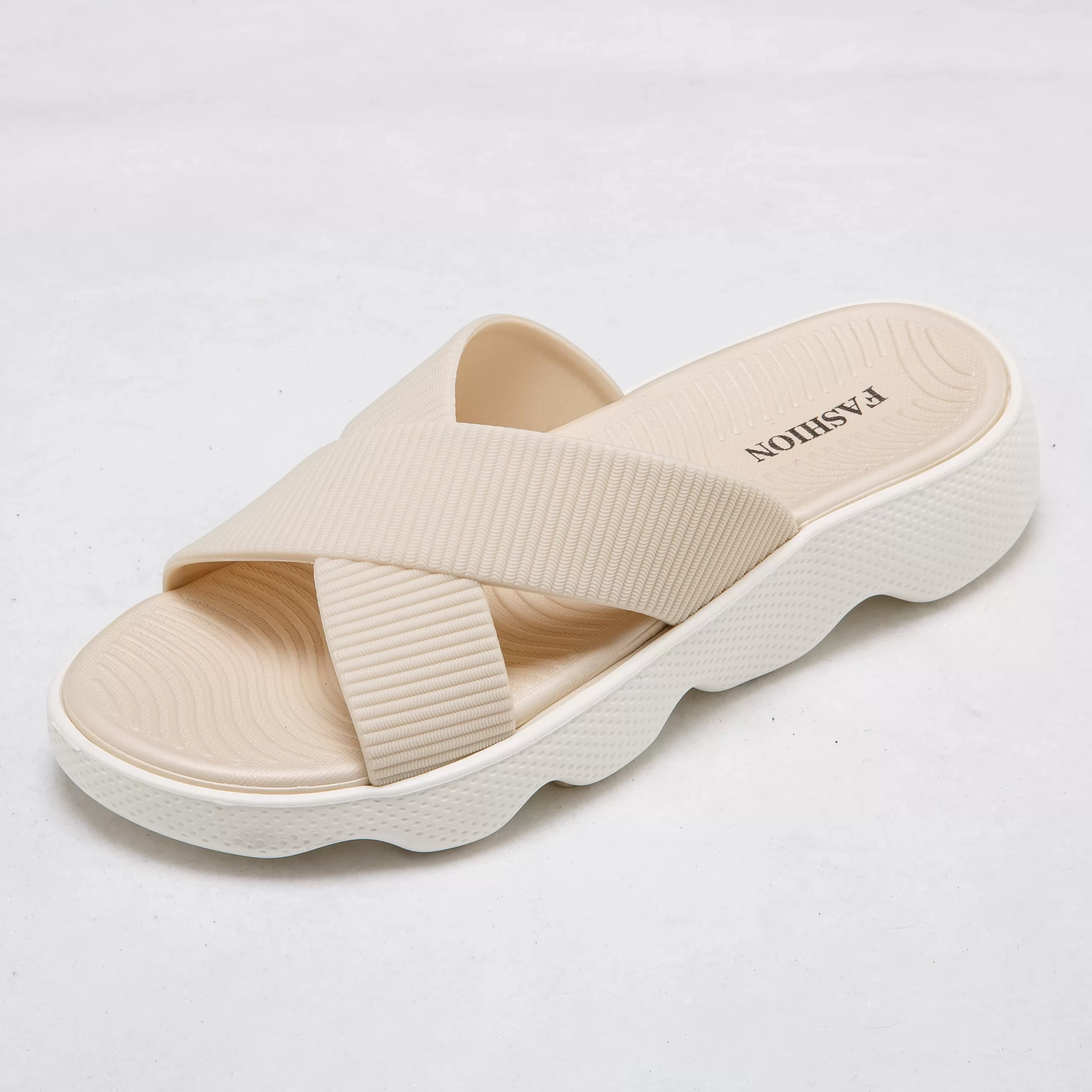 Women’s Crisscross Platform Slides – Lightweight EVA Summer Sandals