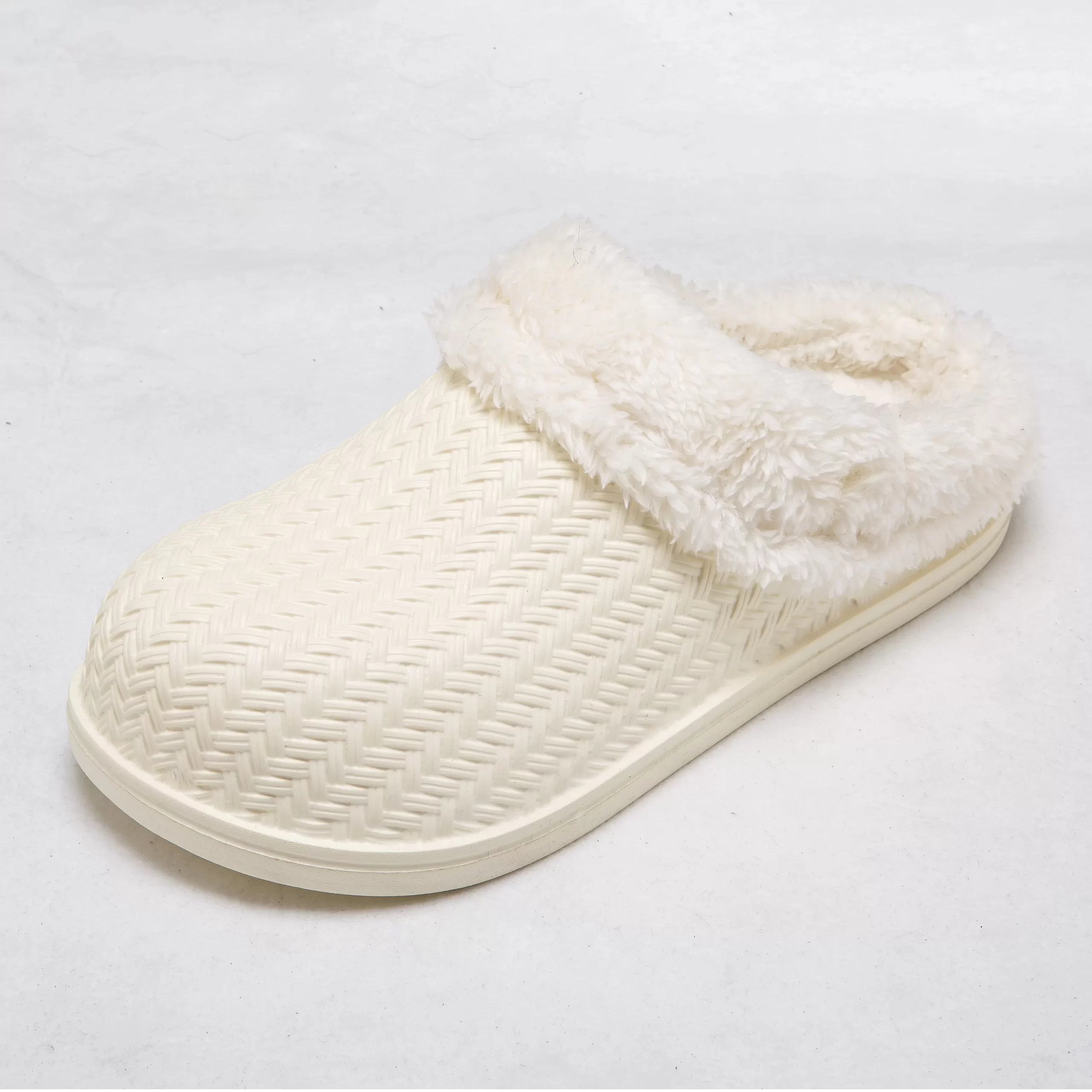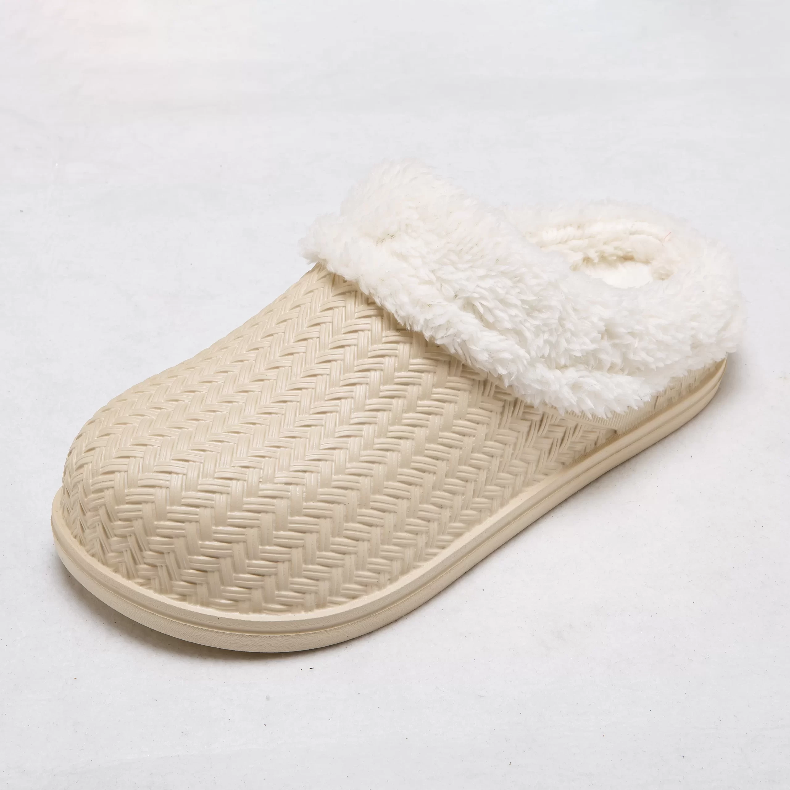 These cozy slippers blend plush warmth with practical waterproof design, making them ideal for transitioning between indoor comfort and outdoor errands in cold, wet weather. The soft, fluffy fleece lining wraps your feet in warmth, while the durable, textured EVA upper and sole are water-resistant and easy to clean.